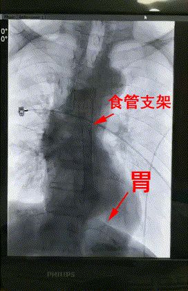 爲了解除患者的病痛,内三科主任李旭丹組織專家讨論,一緻認爲采用DSA下食管支架置入術是理想的方案。手術能同時解決2個問題:一是擴張狹窄的食管,讓患者可以進食;二是封閉食管與氣管之間的瘘口,使食物不會進入肺裏引起肺部感染。