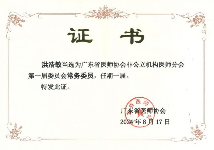 喜訊!我院洪浩敏副院長當選廣東省醫師協會非公立機構 醫師分會第一屆委員會常務委員